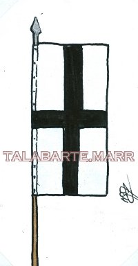 Sustentada na horizontal, sendo bipartida de branco e preto, tendo ao centro uma cruz ocular, vermelha com os extremos arredondados. Por vezes tinha inscrito em toda a sua volta uma legenda do salmo de David " Non Nobis, Domine, Sed Nomini Tuo da Gloriam"
