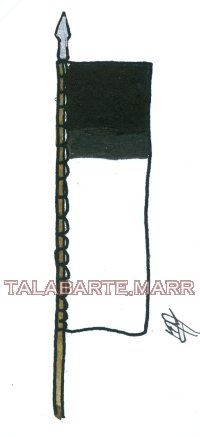 Geralmente eram estreitos e presos na vertical à haste, vendo-se uns com a parte superior preta que ocupava 1/3 e a branca 2/3, ou metade: